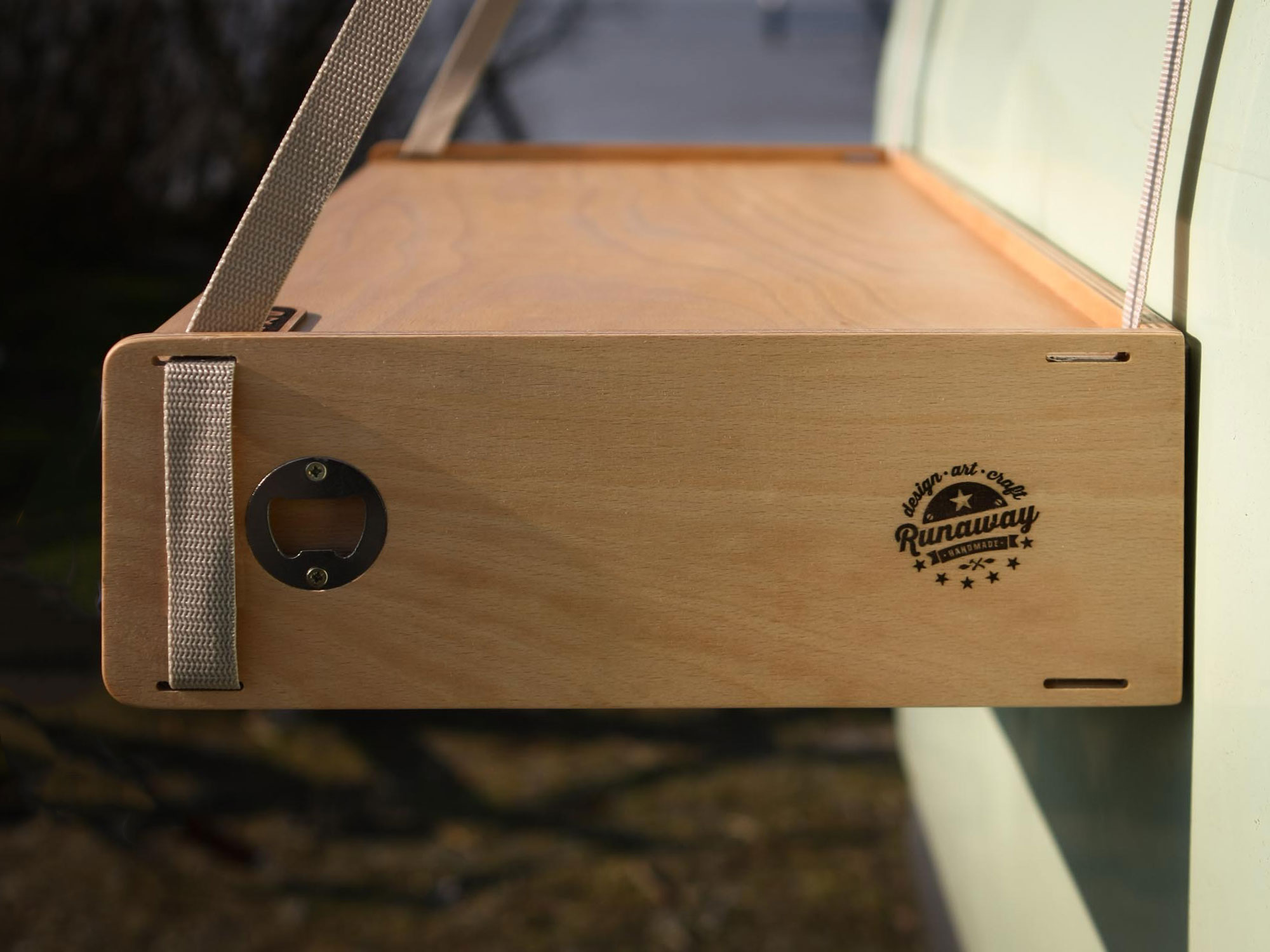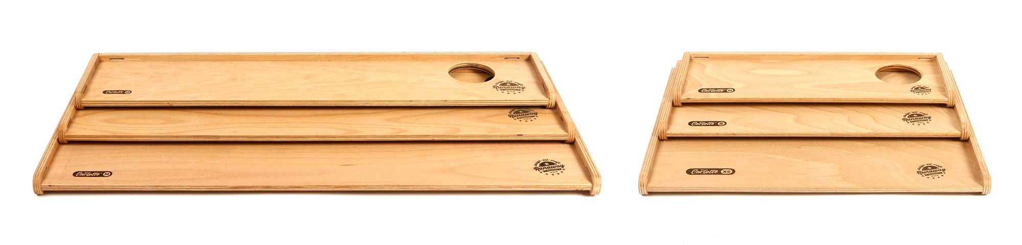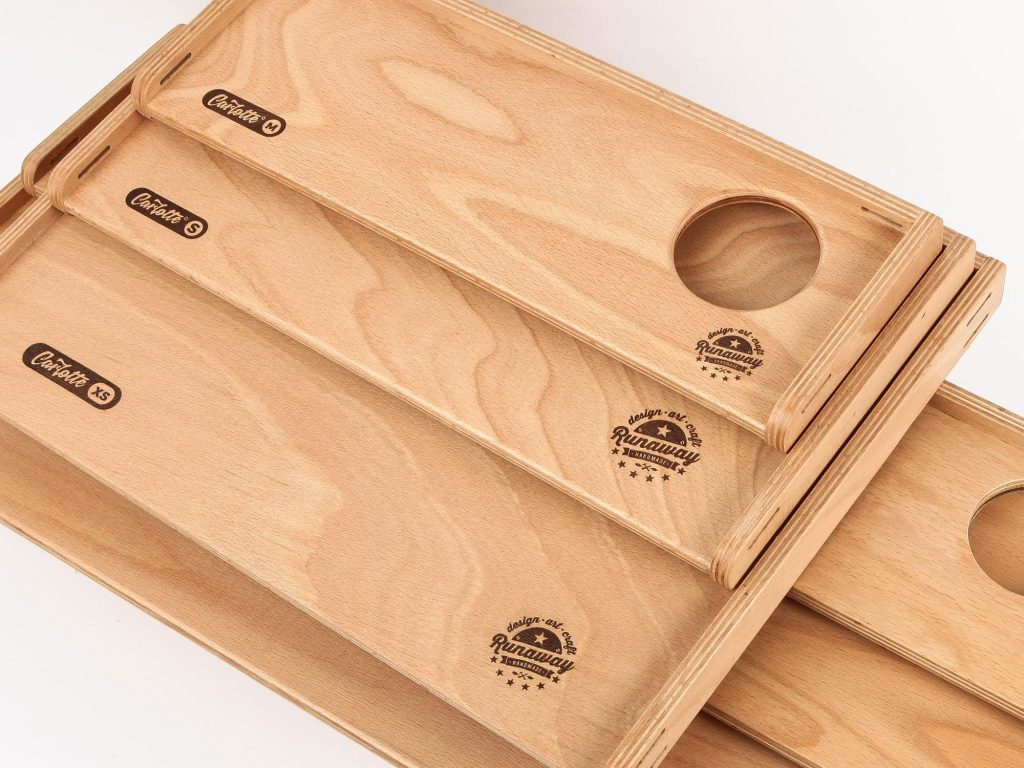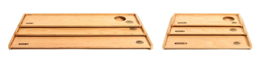 Alle Holzteile sind aus 6 bzw. 10mm Buchenmultiplex gefertigt, was im Gegensatz zu Birke oder Pappel eine sehr harte, recht kratzfeste und robuste Oberfläche hat und ist damit ideal für den Camping-Einsatz.