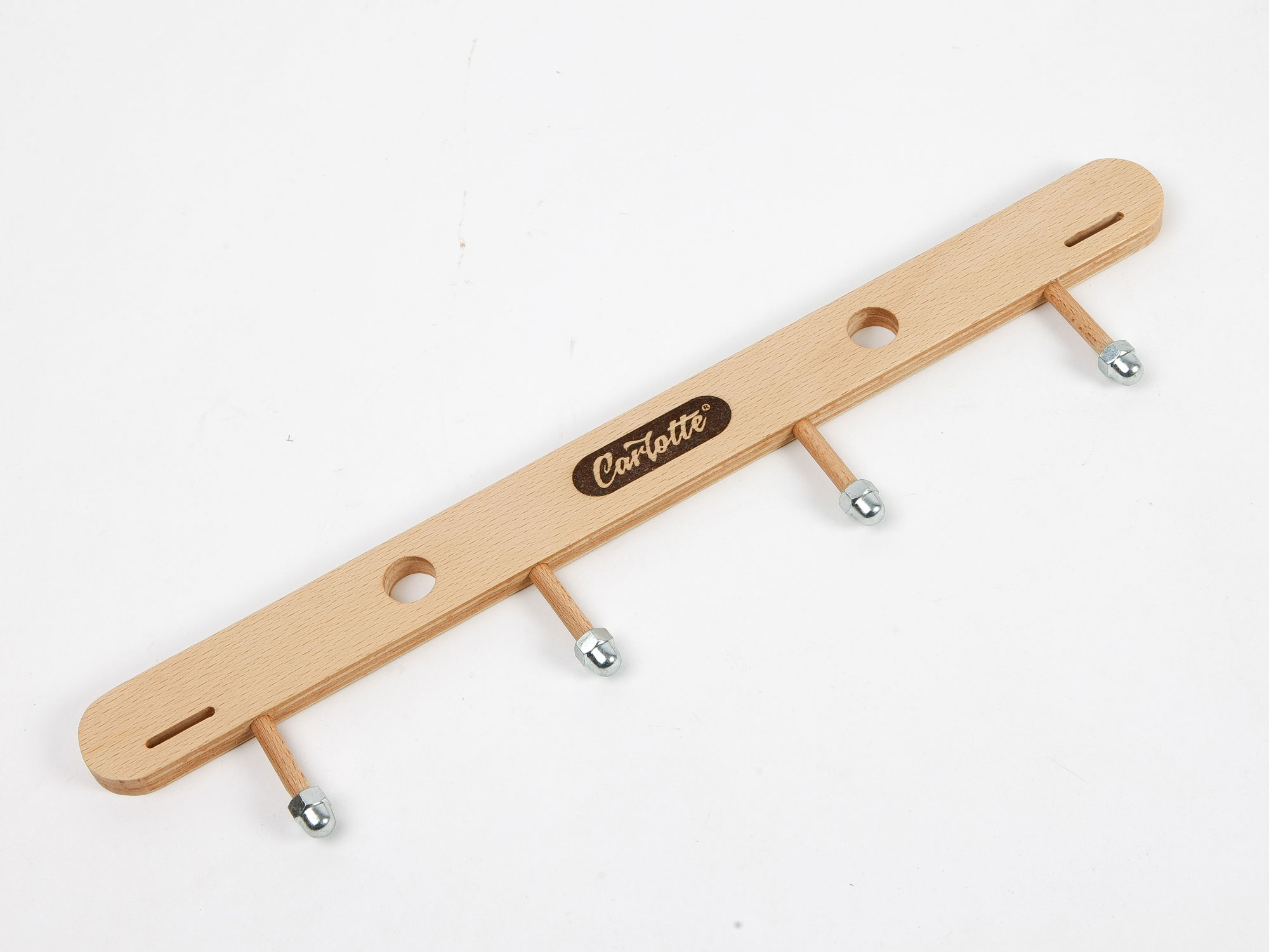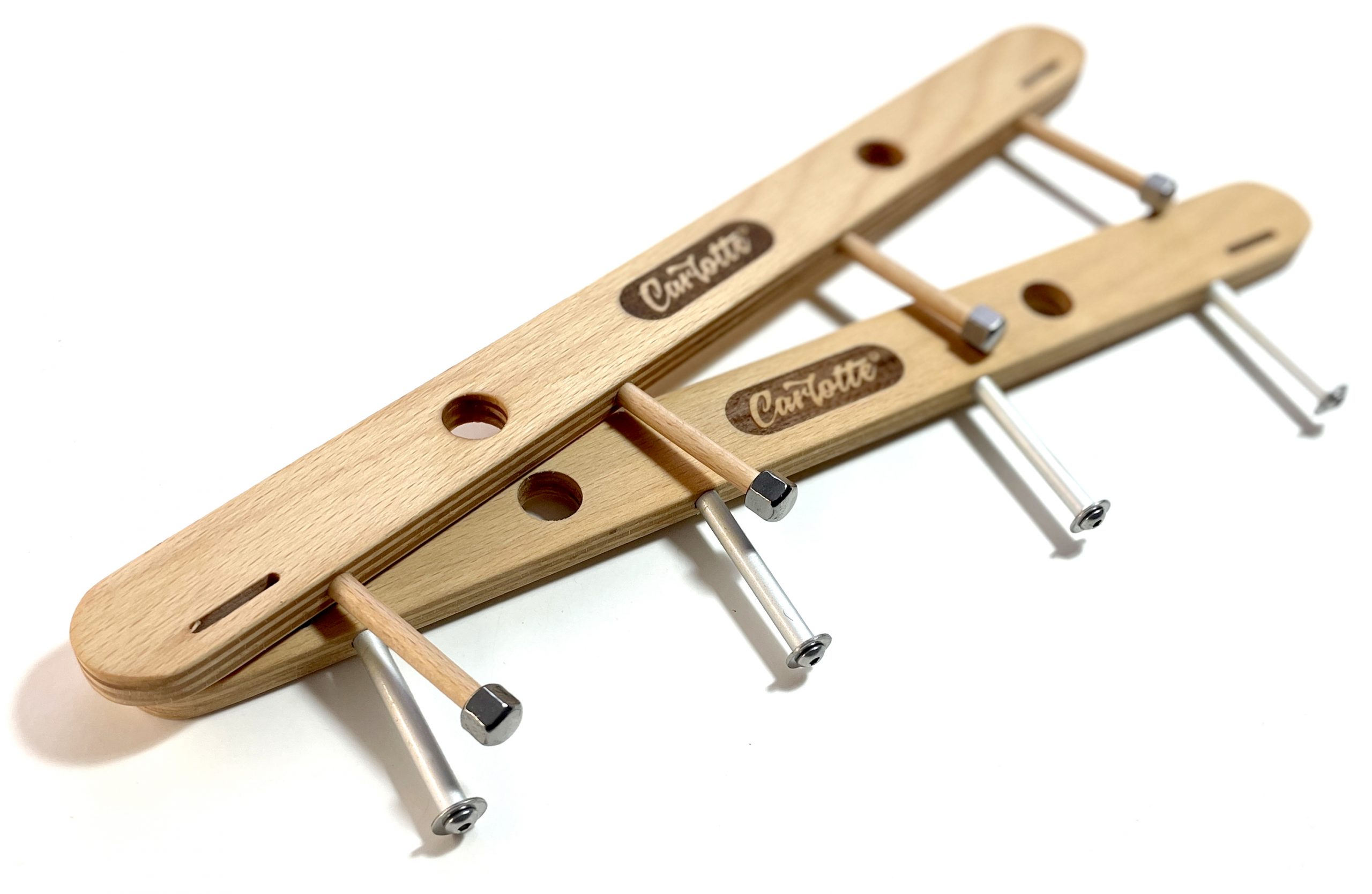 Die Haken sind wahlweise aus 6mm Buchenrundstäben oder aus 6mm Aluminium-Rohr.