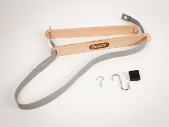 Im Lieferumfang sind der Halter, Höhenverstell-Klips, ein Hängehaken und ein Haken zum Einschrauben dabei.