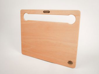 Er kann aber einen Hocker zum schnellen Tischchen erweitern, als Schneidebrett auf der Rückseite oder Tablett unterwegs benutzt werden.