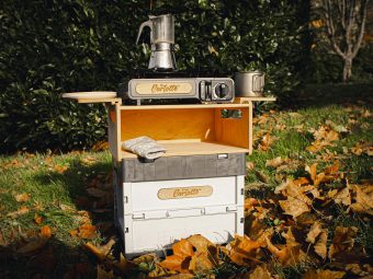Die Carlotte SC (Small & Compact) ist eine kleine, kompakte und leichte Caming-Mini-Küche / Kochplatz für Camping, Festival, Terrasse, Balkon, Garten oder einfach irgendwo im Grünen.
