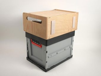 – Option 3: „Korpus mit Box“: Wie oben mit faltbarer Eurobox