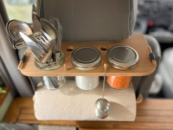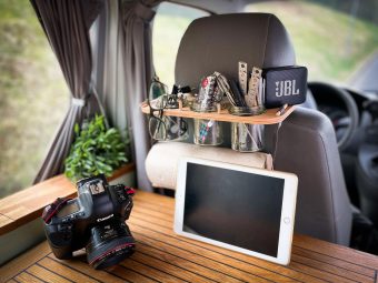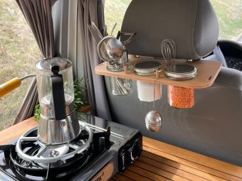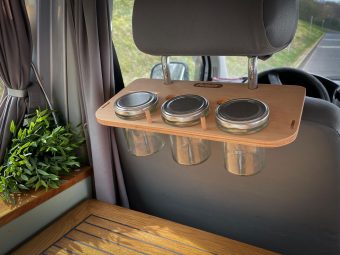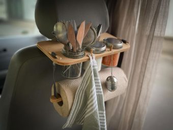 Nicht nur Gewürze, Lebensmittel oder Besteck sondern auch Krimskrams, Handtücher oder Jacken können an der Nackenstütze (Fahrer oder Beifahrerseite) hängend untergebracht werden.